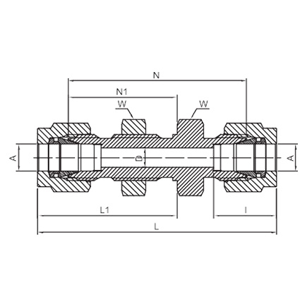 | PART NUMBER | A TUBE O.D. | D | W HEX FLAT | N | N1 | L | L1 | I | PANEL HOLE DRILL SIZE | MAX PANEL THICKNESS | ||||||||||