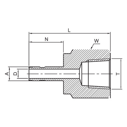 | PART NUMBER | A TUBE O.D. | T NPT | D | W HEX FLAT | N | L | |||||